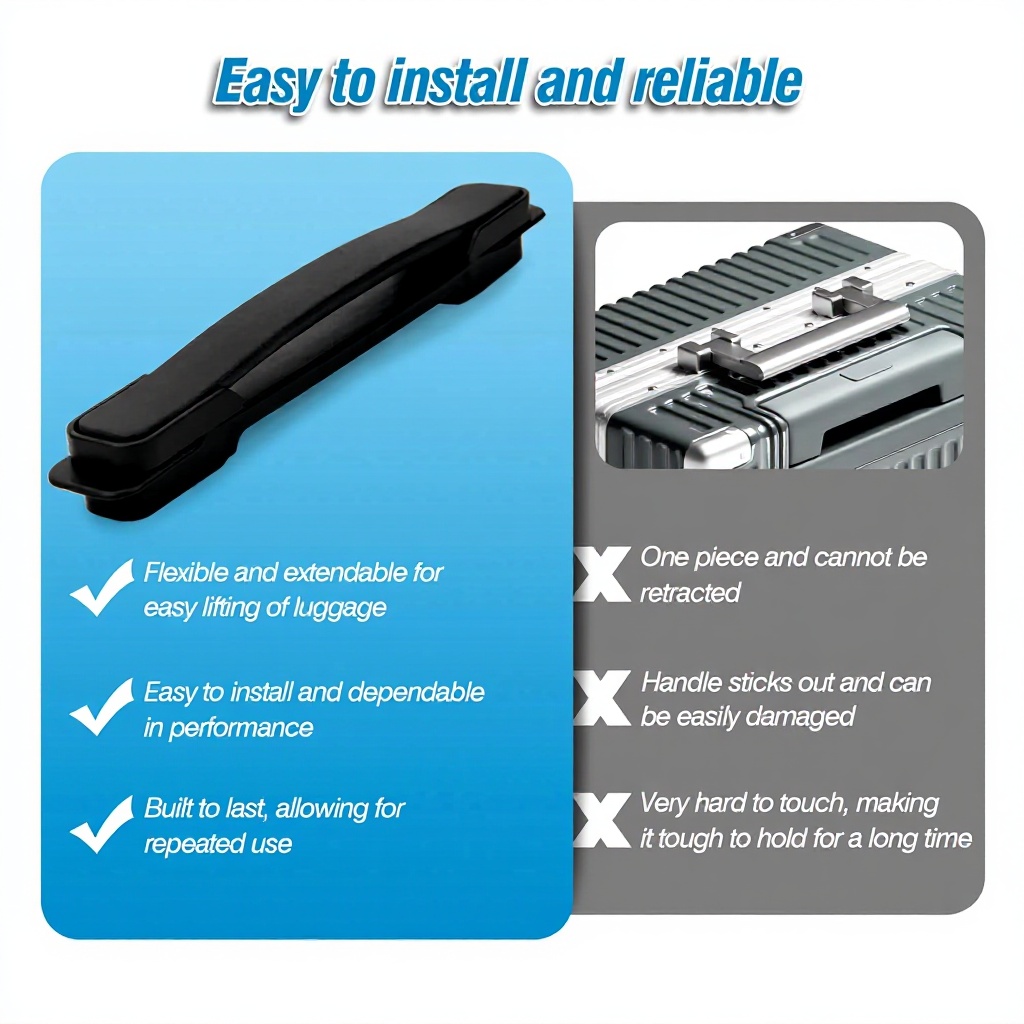 Idéale pour les voyages fréquents, cette poignée est parfaite pour remplacer une poignée cassée sur votre valise de cabine ou grand format. Elle convient également aux déplacements professionnels ou loisirs, où la fiabilité du bagage est essentielle.
