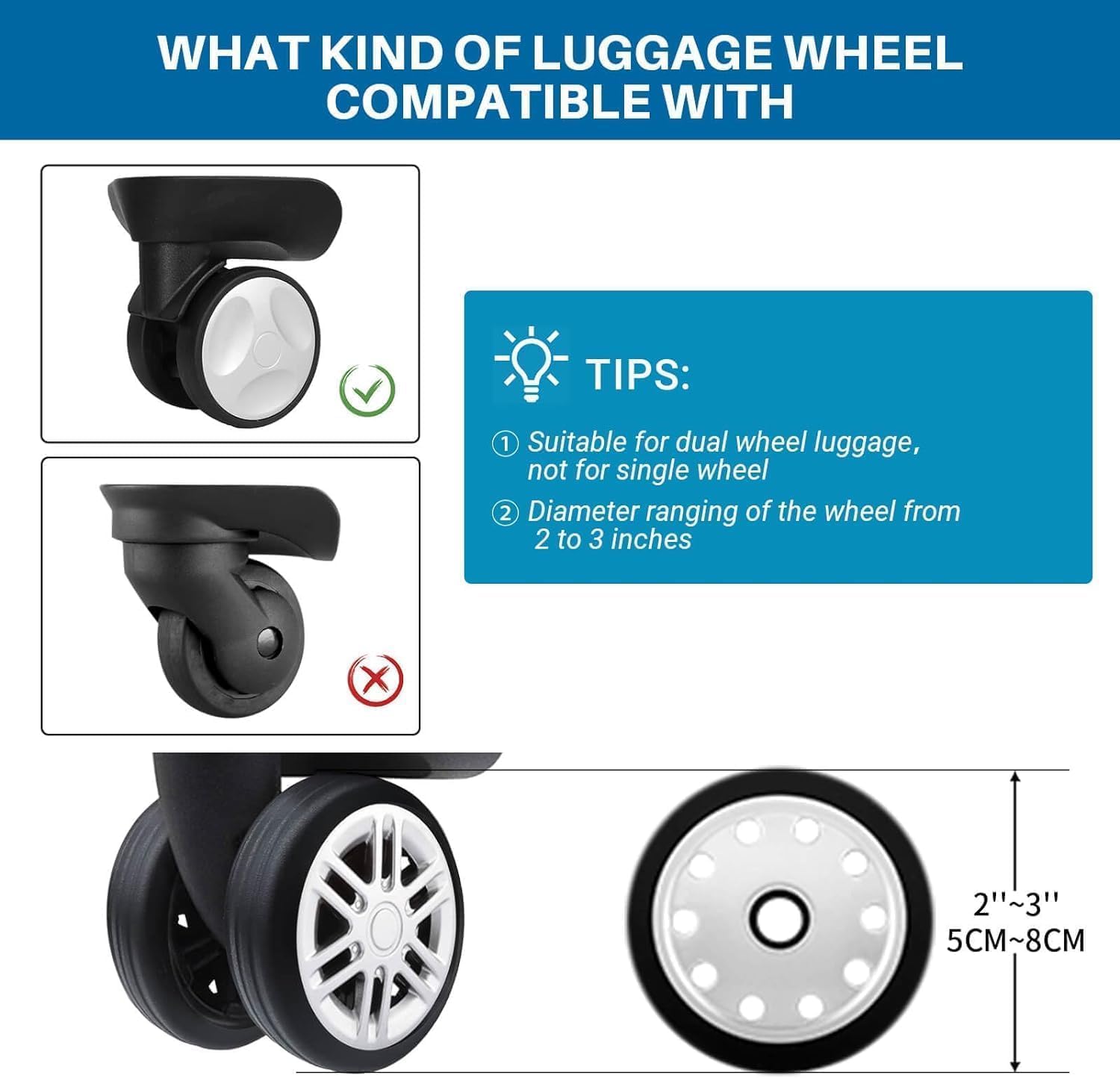 Ils sont conçus pour s’adapter à la plupart des valises à roulettes standard. Vérifiez la taille de vos roues pour assurer une compatibilité optimale.