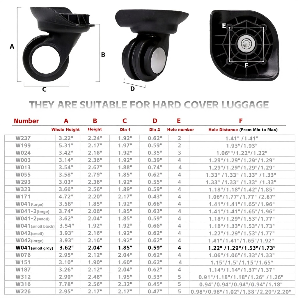 Idéales pour remplacer les roues endommagées ou usées sur vos valises de voyage, sacs à roulettes et autres bagages mobiles. Parfaites pour les déplacements fréquents en aéroport, gares, ou tout environnement nécessitant le transport de bagages sur roues. Conviennent également pour la réparation de chariots et autres équipements mobiles similaires.
