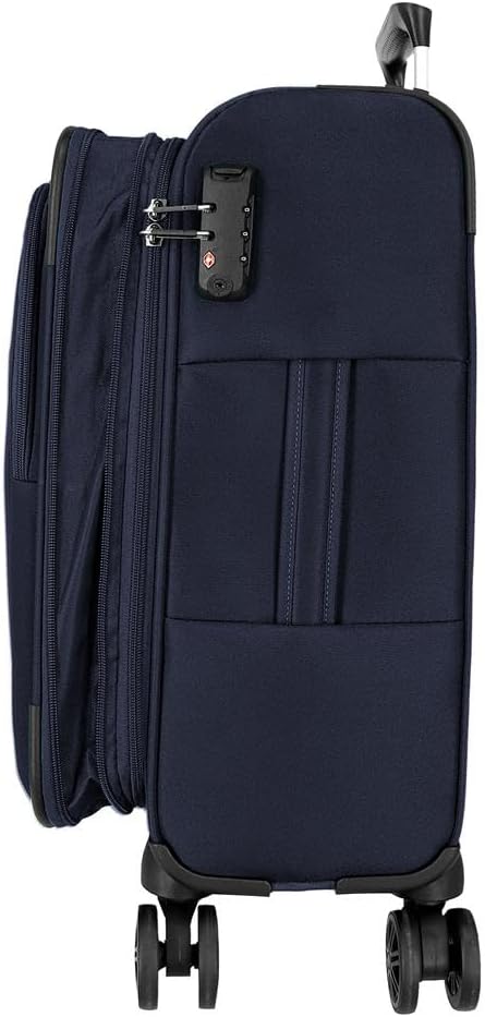 Cette valise cabine combine durabilité et fonctionnalité avec un matériau polyester souple et léger, des roues pivotantes pour une manœuvrabilité aisée, et une fermeture TSA approuvée pour la sécurité lors des voyages internationaux. Son design inclut des poches pratiques et une extension jusqu’à 3 cm pour adapter sa capacité.